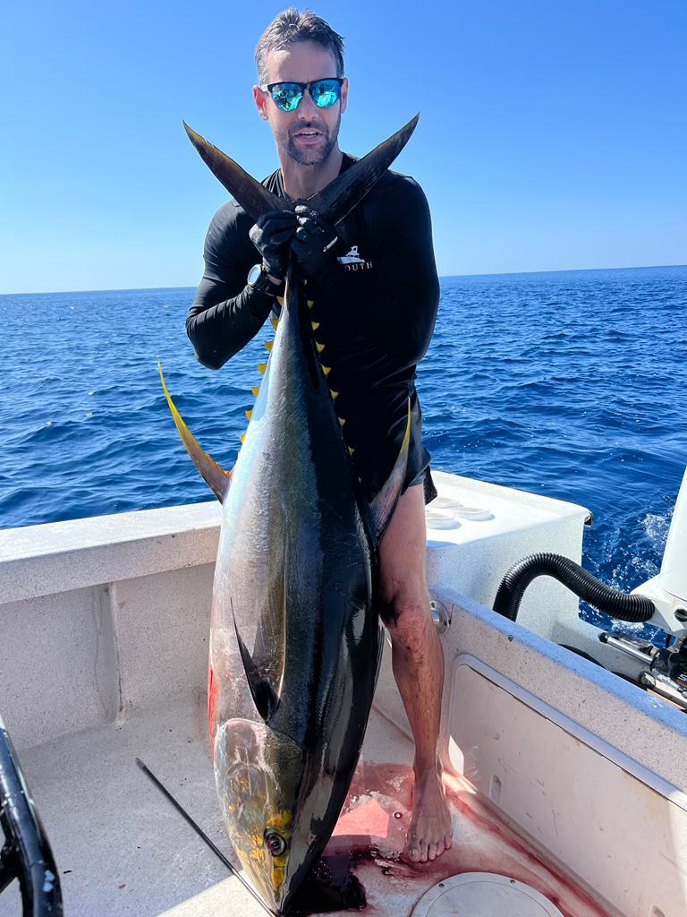 Bluewater spearfishing involves cruising offshore communicating with other boats, looking for birds, debris in water and dolphins to locate schools of Yellowfin Tuna, Wahoo, and Mahi. All Bluewater spearfishing is done using floats. Reels can be used for inshore spearfishing. In Bluewater when a large fish is speared, all divers will be picked up by boat to follow float. Crew or diver in boat will retrieve float and under captain supervision start bringing fish to surface. If diver or captain decide that it would be prudent to shoot the fish again, then diver will be allowed to enter water with another speargun and float to do the shot.